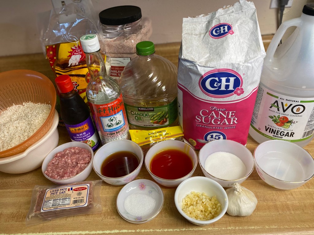 the minced garlic, ground pork, pork liver pate, shrimp paste, sugar & fish sauce.
